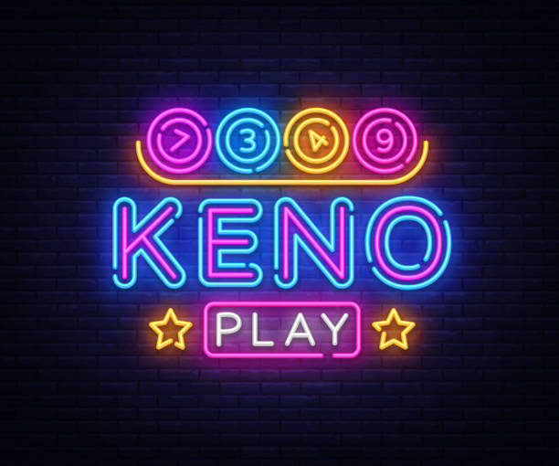 Keno Lottery neon sign vector. Lotto Design template neon sign, Casino, celebration light banner, neon signboard, nightly bright advertising, light inscription. Vector illustration.